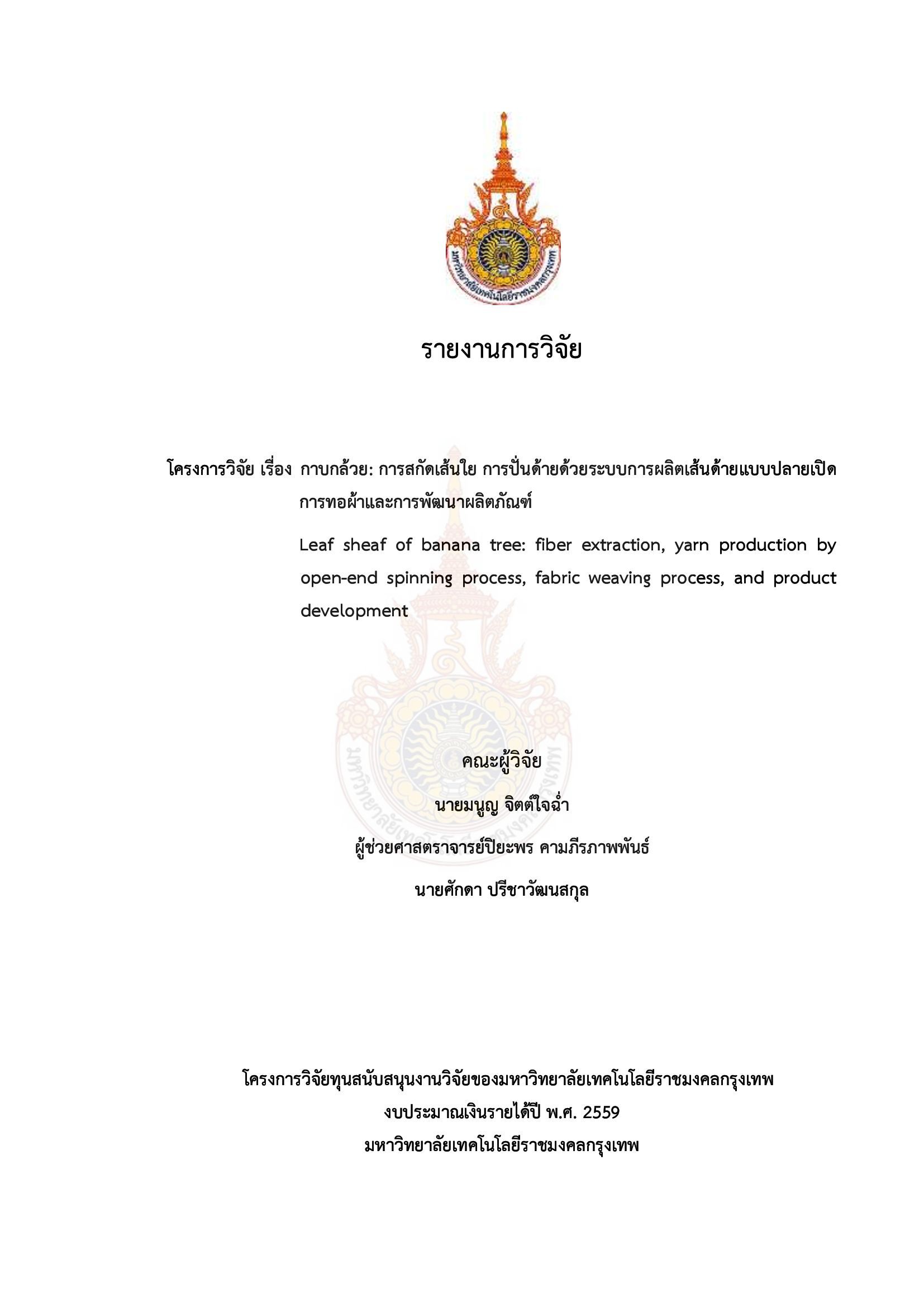 กาบกล้วย: การสกัดเส้นใย การปั่นด้ายด้วยระบบการผลิตเส้นด้ายแบบปลายเปิด การทอผ้าและการพัฒนาผลิตภัณฑ์