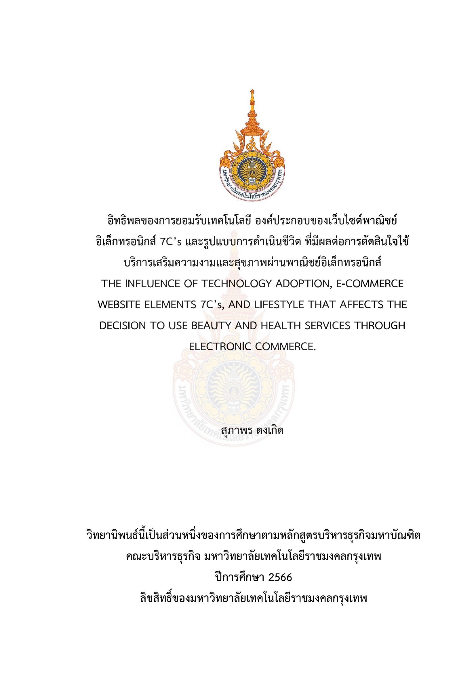 อิทธิพลของการยอมรับเทคโนโลยี องค์ประกอบของเว็บไซต์พาณิชย์อิเล็กทรอนิกส์ 7C’s และรูปแบบการดำเนินชีวิต ที่มีผลต่อการตัดสินใจใช้บริการเสริมความงามและสุขภาพผ่านพาณิชย์อิเล็กทรอนิกส์