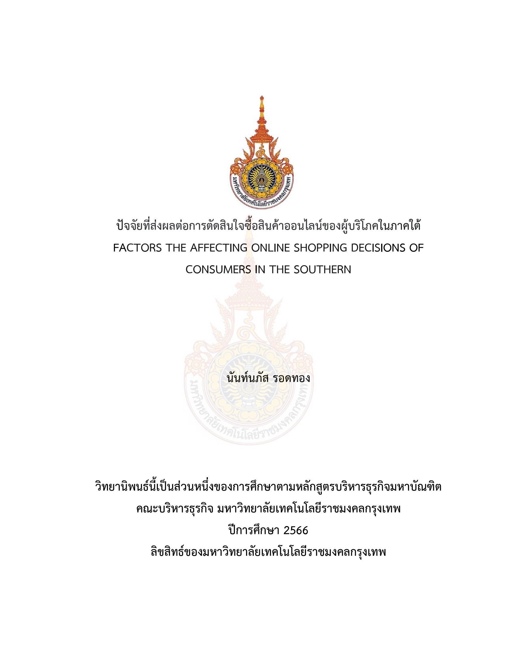 ปัจจัยที่ส่งผลต่อการตัดสินใจซื้อสินค้าออนไลน์ของผู้บริโภคในภาคใต้
