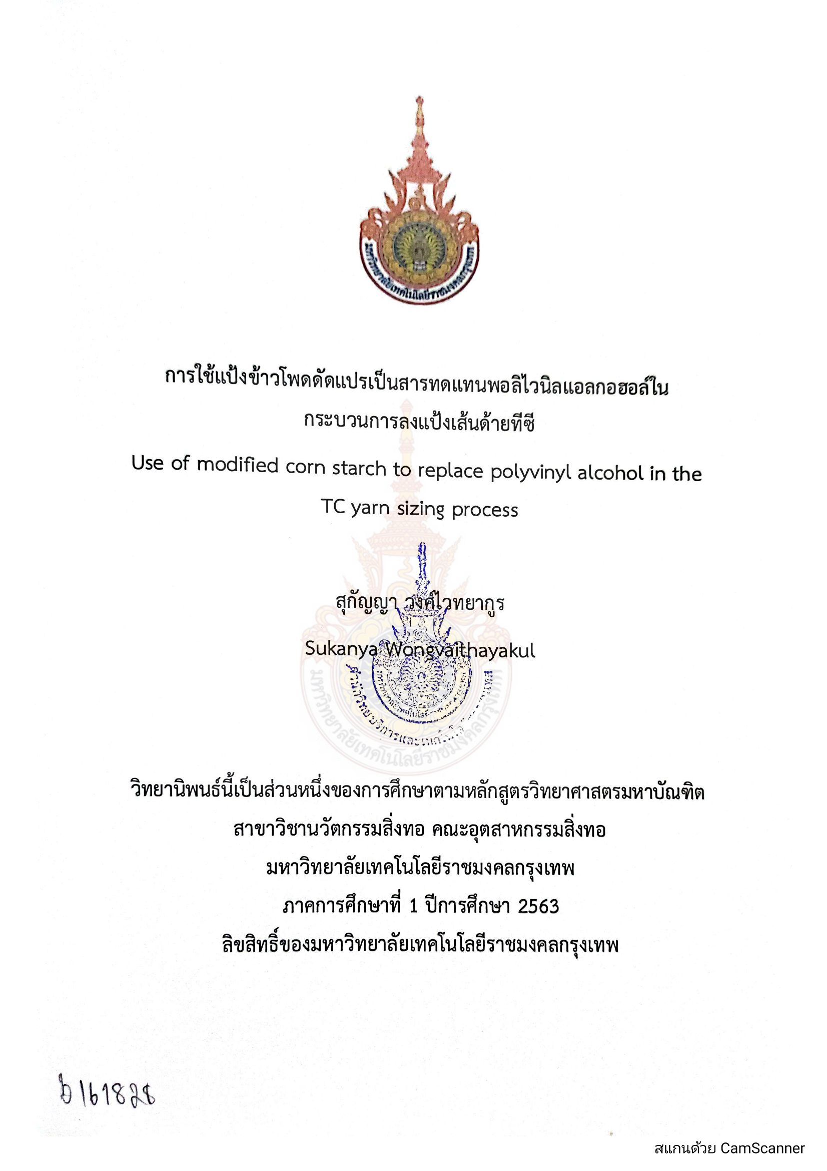 การใช้แป้งข้าวโพดดัดแปรเป็นสารทดแทนพอลิไวนิลแอลกอฮอล์ในกระบวนการลงแป้งเส้นด้ายทีซี
