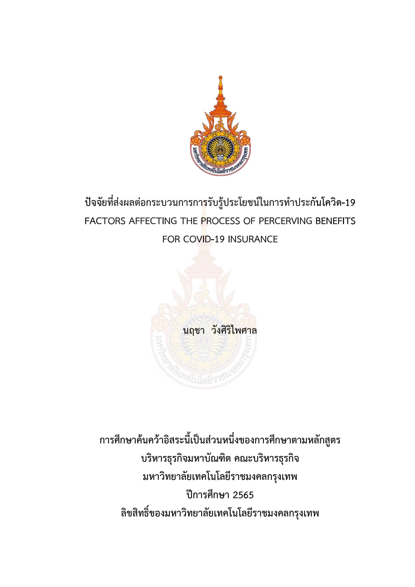 ปัจจัยที่ส่งผลต่อกระบวนการการรับรู้ประโยชน์ในการทำประกันโควิด-19